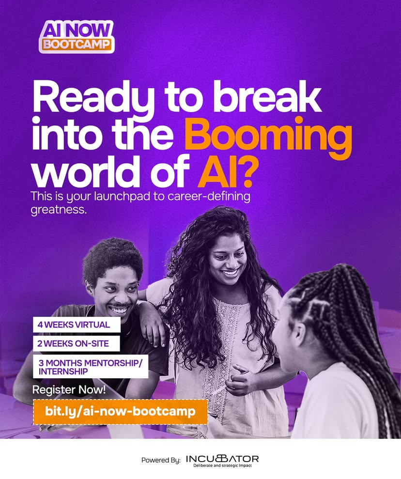 The AI Now Bootcamp is a transformative, fully-funded training program equipping Africans with cutting-edge Artificial Intelligence (AI) skills.